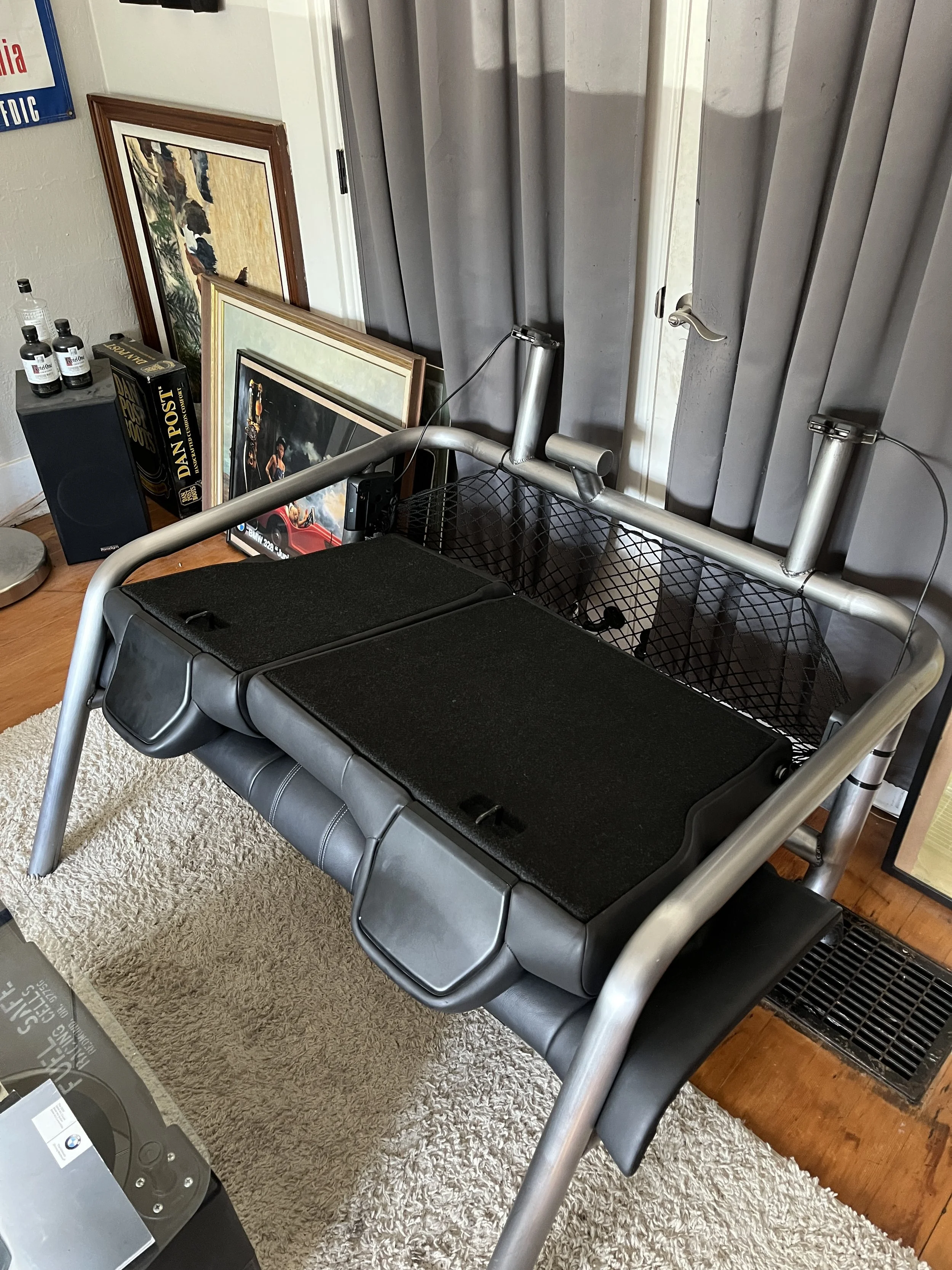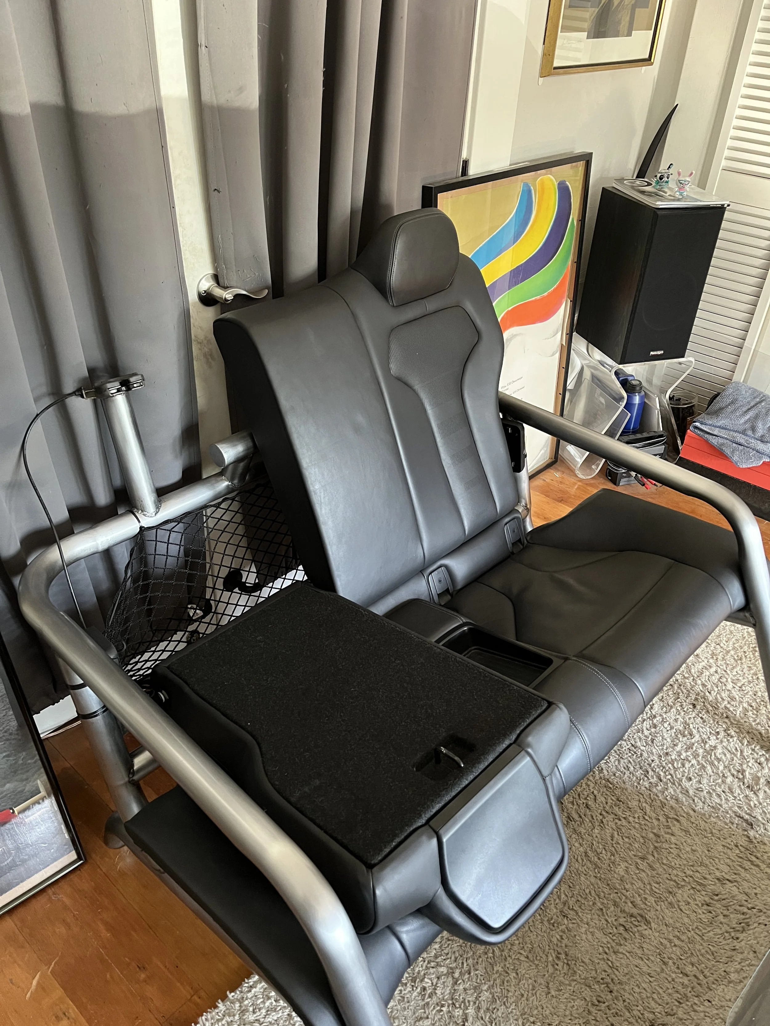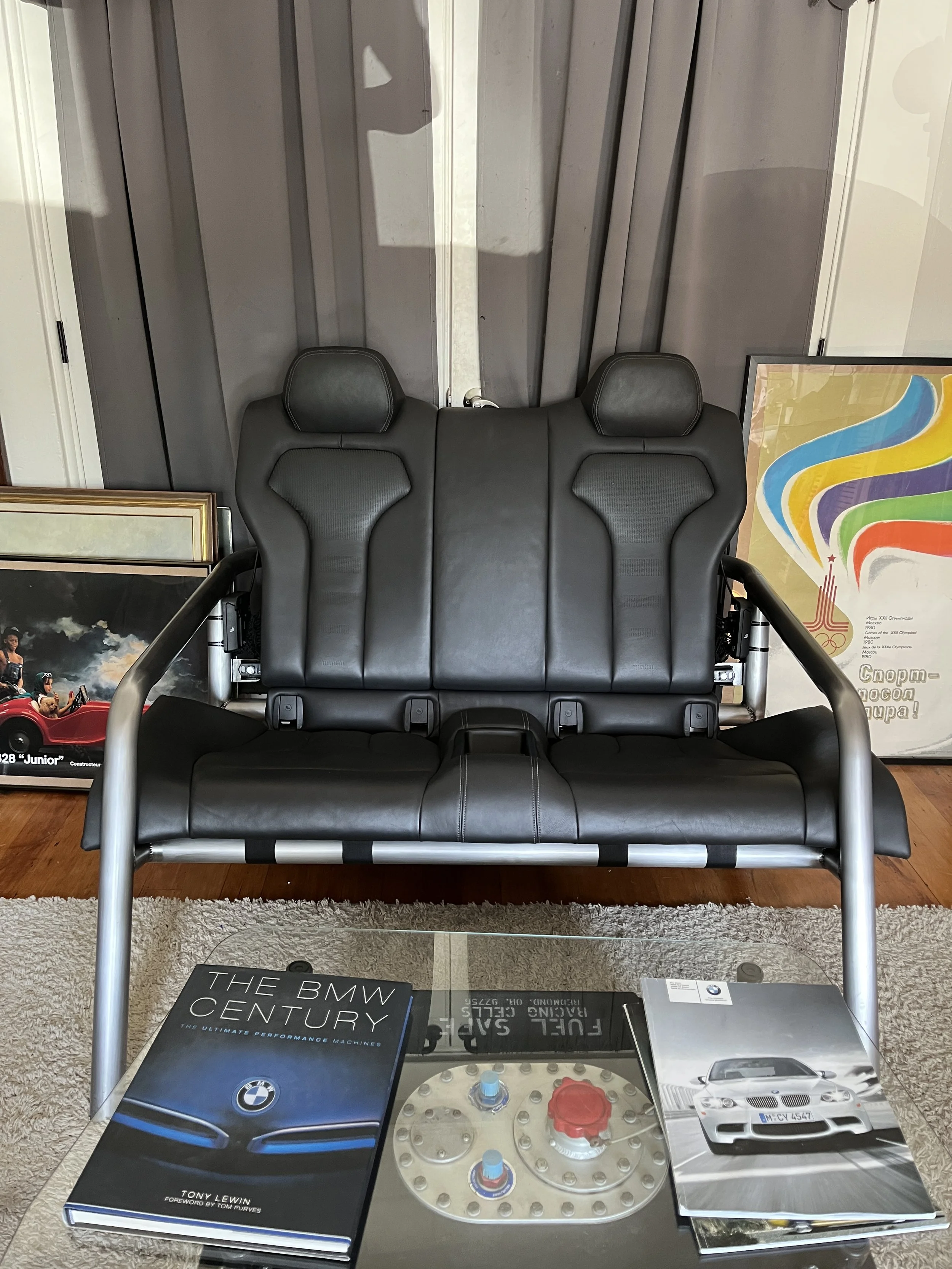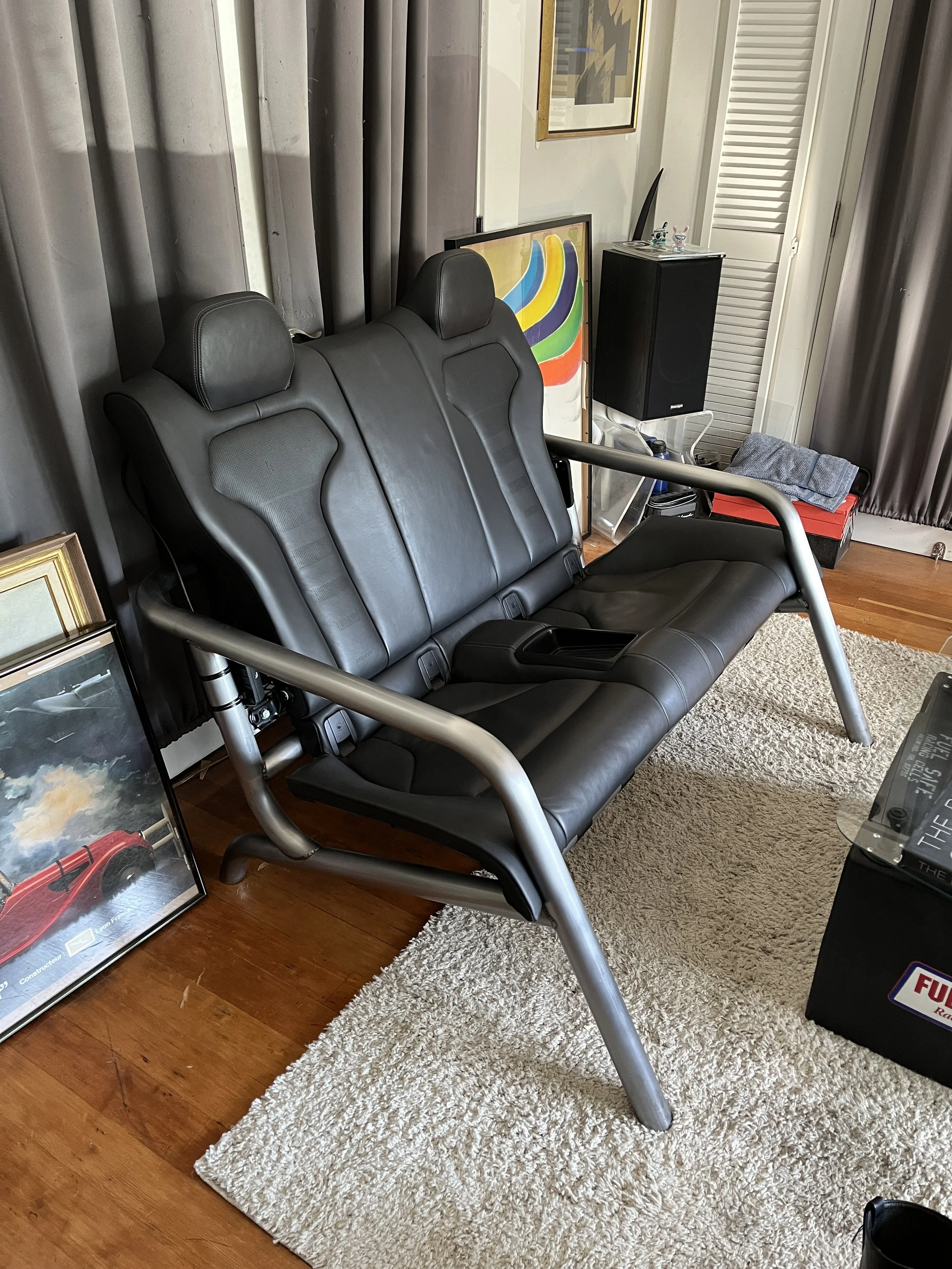 The Idea of a BMW couch had been floating around in the back of my mind for the better part of 3 years. How might we combine the already great ergonomics of sports sedan interiors with modern furniture? The M4 couch is the solution. The frame was fabricated with Tig welded 4130 alloy steel and features the Nappa leather cushions out of an F82 BMW M4. This is truly a passion project that I was able to bend into a school project.